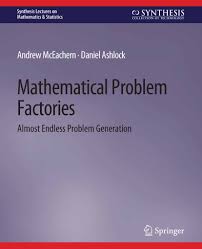 McEachern, Andrew Mathematical problem factories : almost endless problem generation Cham, Switzerland : Springer Nature Switzerland, 2022. xvii, 147 p. -- (Synthesis lectures on mathematics and statistics ; vol. 44) QA300 M455 |